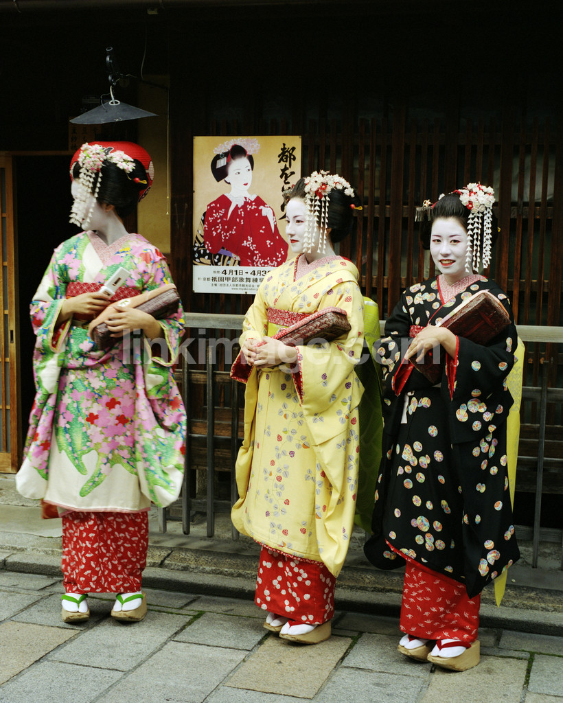 - geishas, three, tradition, geisha costume, women, floral, kimono, culture
