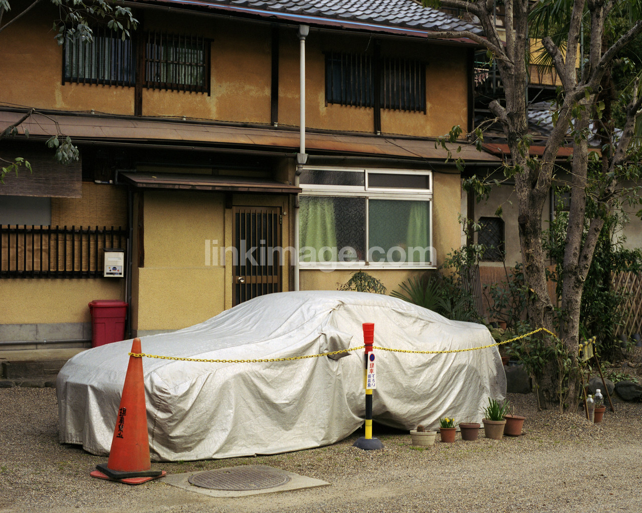 house, villa, car, parking, covered, blommkrukor, silver, buildings, roadblock, protected, hidden