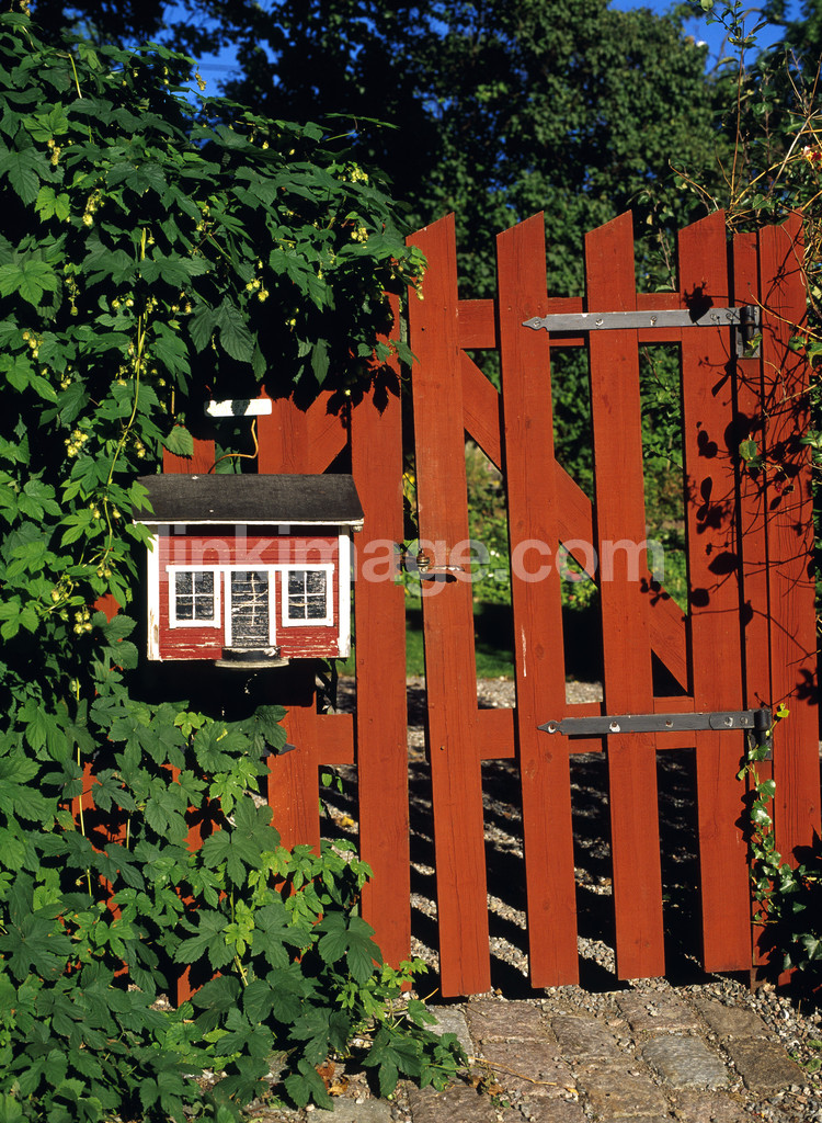 - falun red, mailbox, stockholm, south, summer greenery, summer, gate, all, buildings, residential environment, sweden, letter, mail, box, carpenter, joy