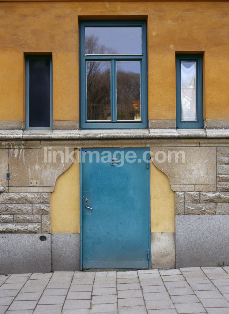 - house, façade, stockholm, door, window, blue, all, architecture, buildings, residential environment