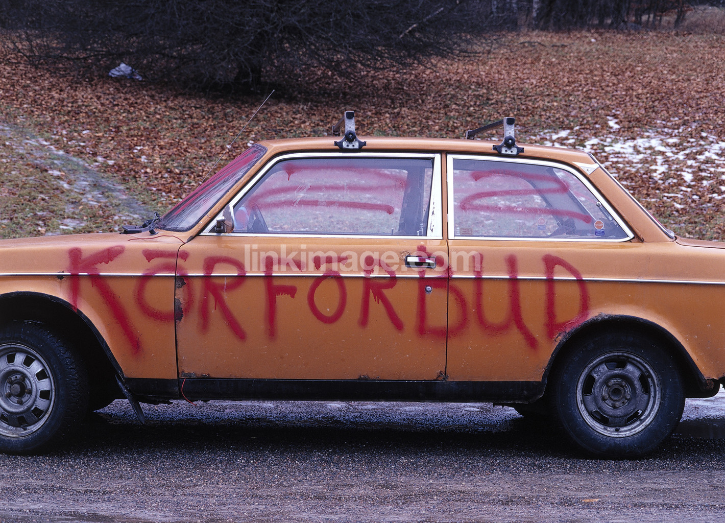 - immobilisation, volvo, orange, red-orange, fall, car, cars, transport, communication