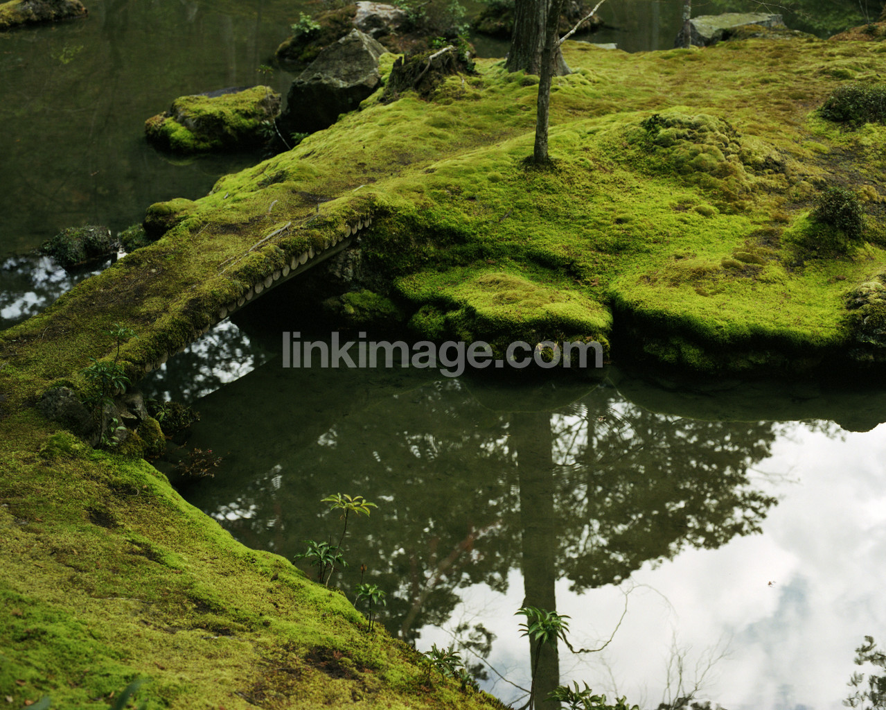 garden, moss, water, bridge, lake, on, sky, tree, mystery, tale, plant, plants, vegetation