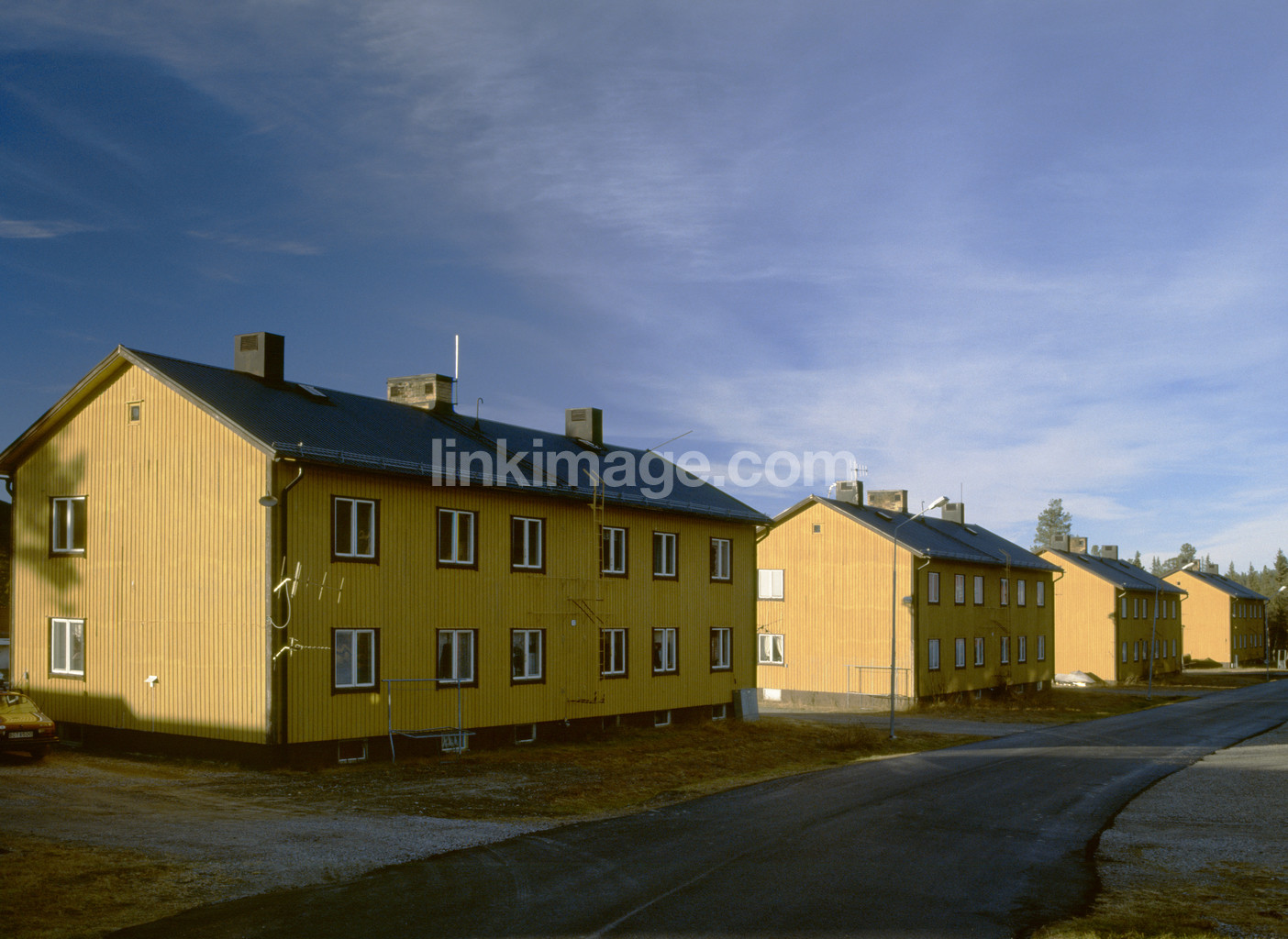 - Four residential buildings with yellow ends. laisval