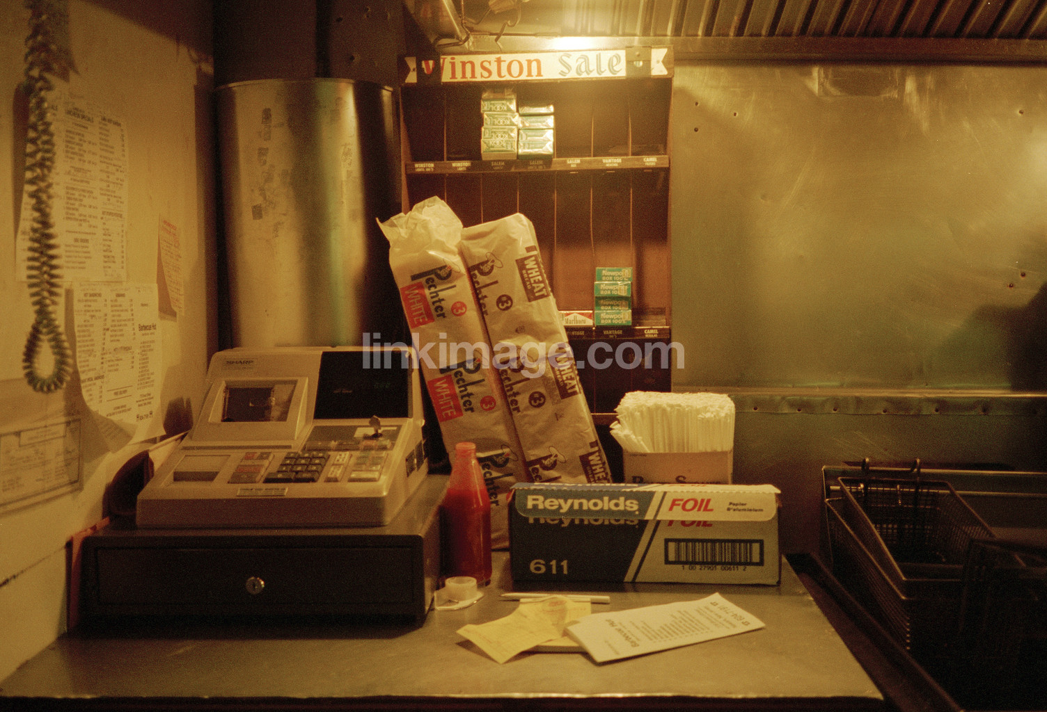 - Cash register and bread packaging. usa