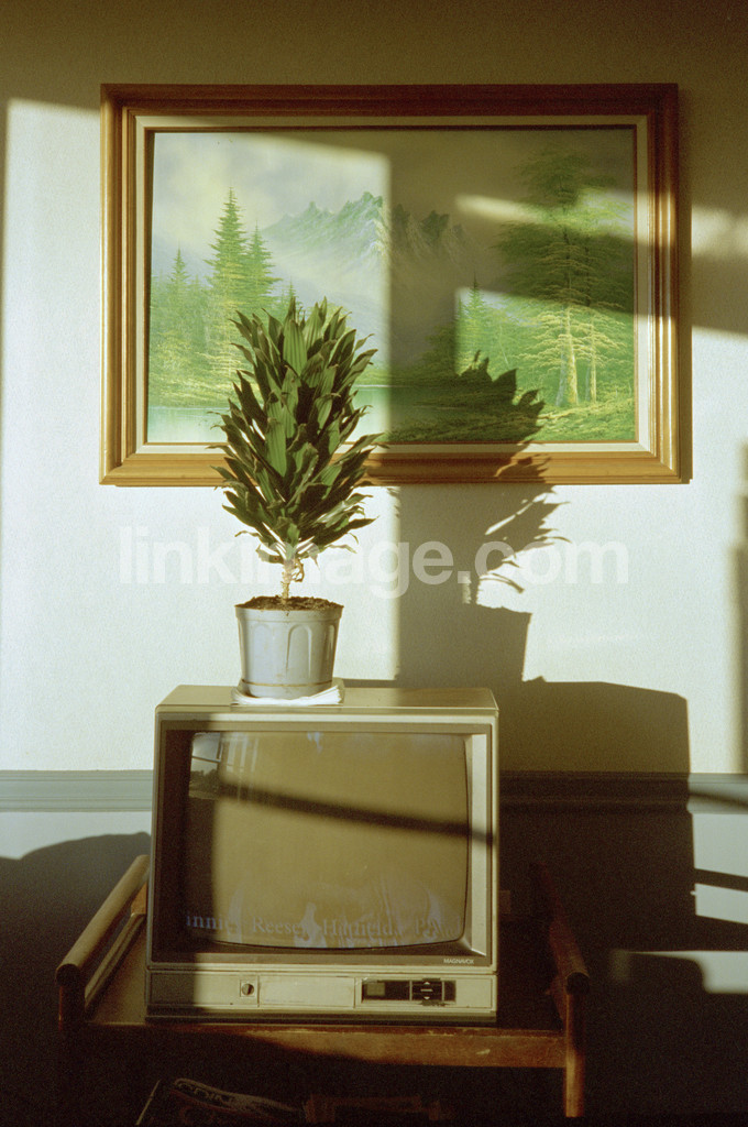 - Potted plant and tv set.