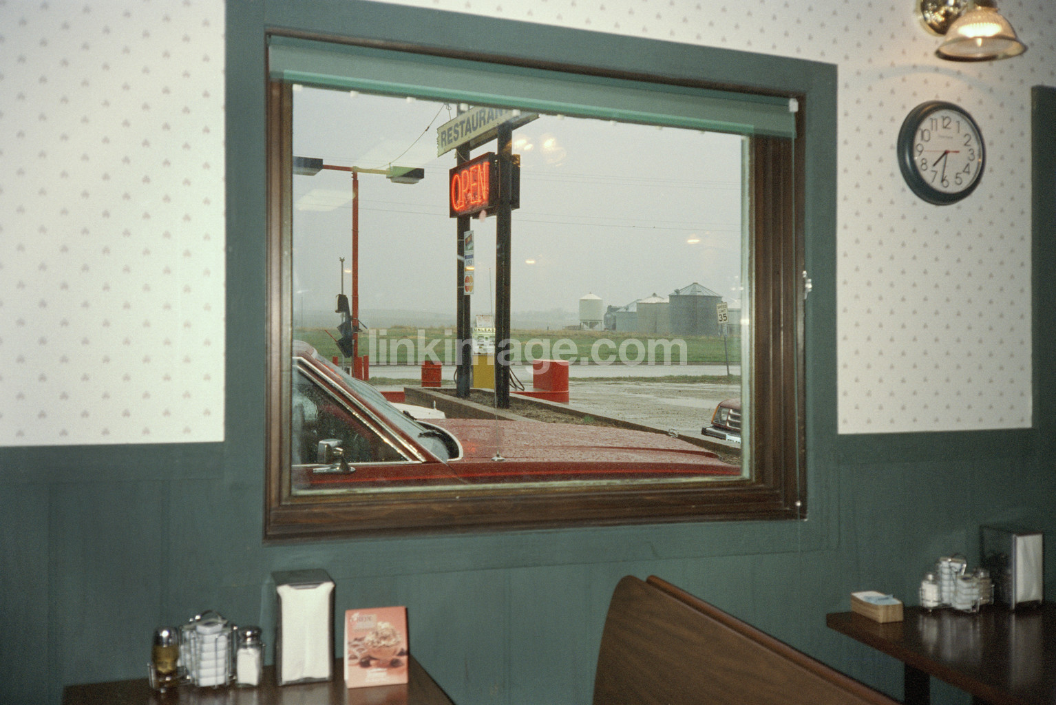 - bar, restaurant, table, views, clock, window, neon, sign