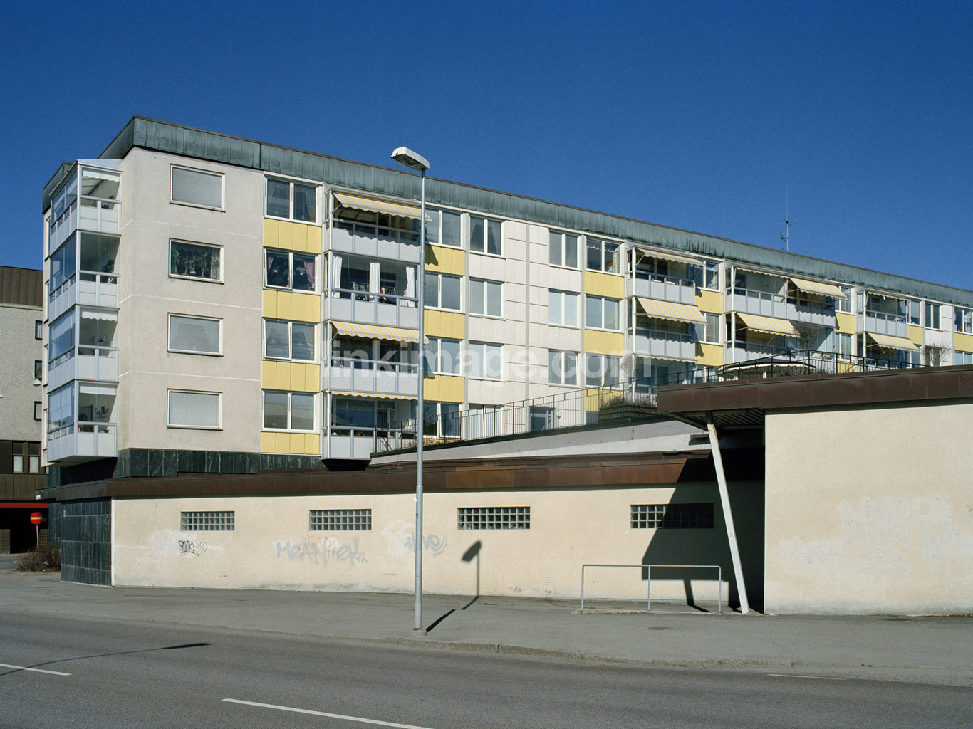Buildings with yellow tiles. Husqvarna.