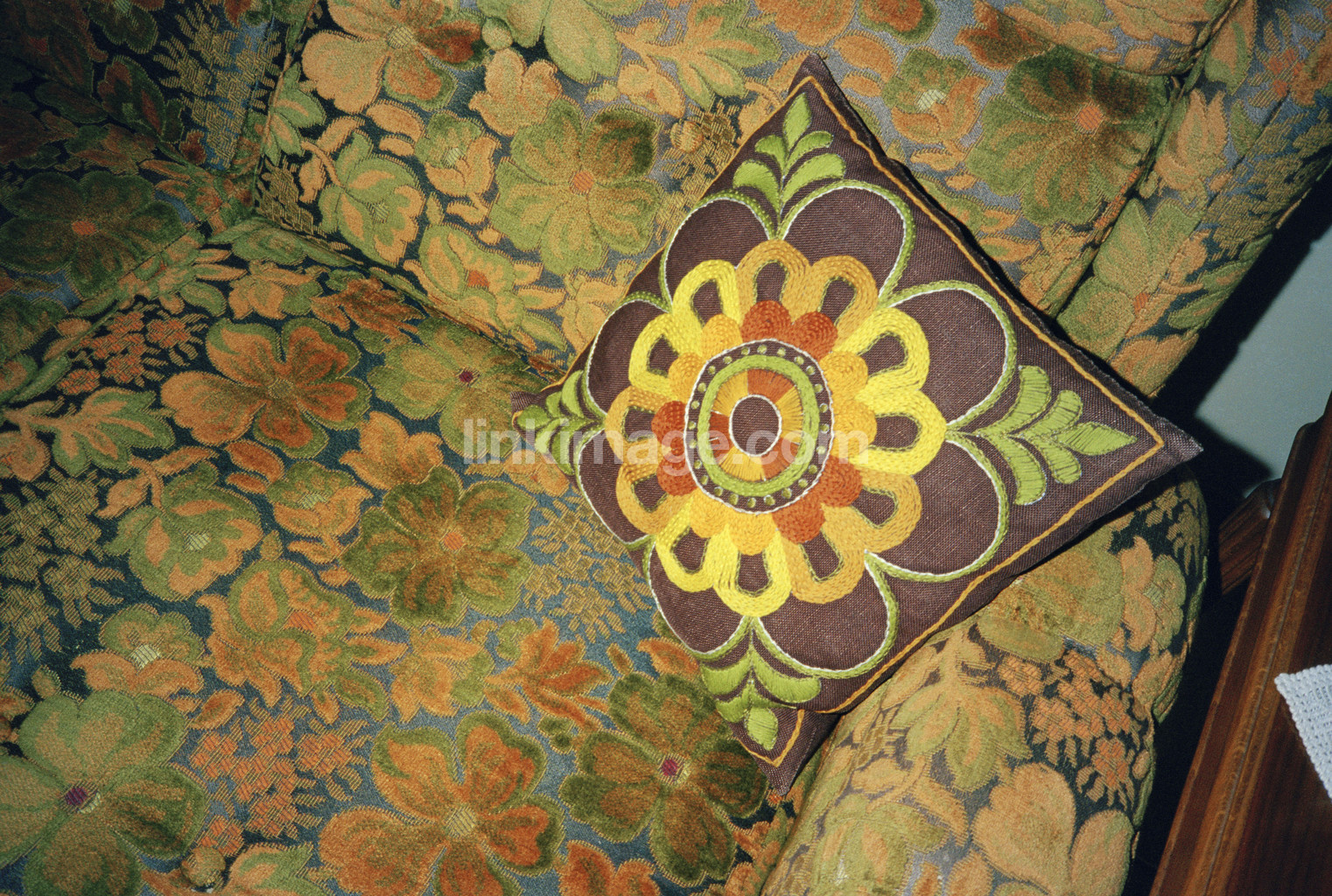- Armchair and cushion with floral patterns