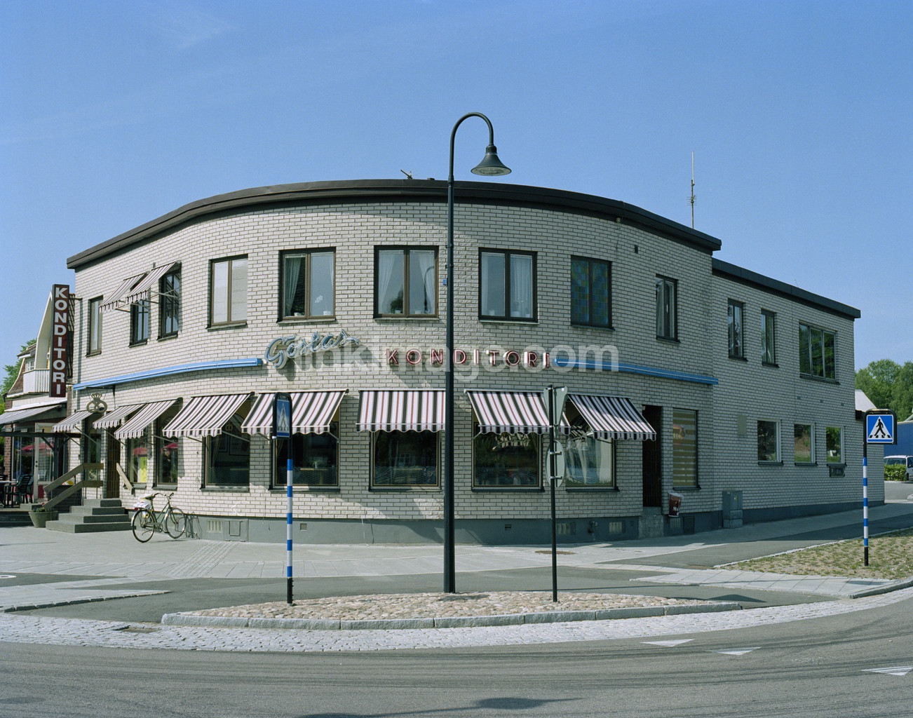 Confectionery. Funkis Building dressed with mexitegel, Smålandstenar, Smaland.
