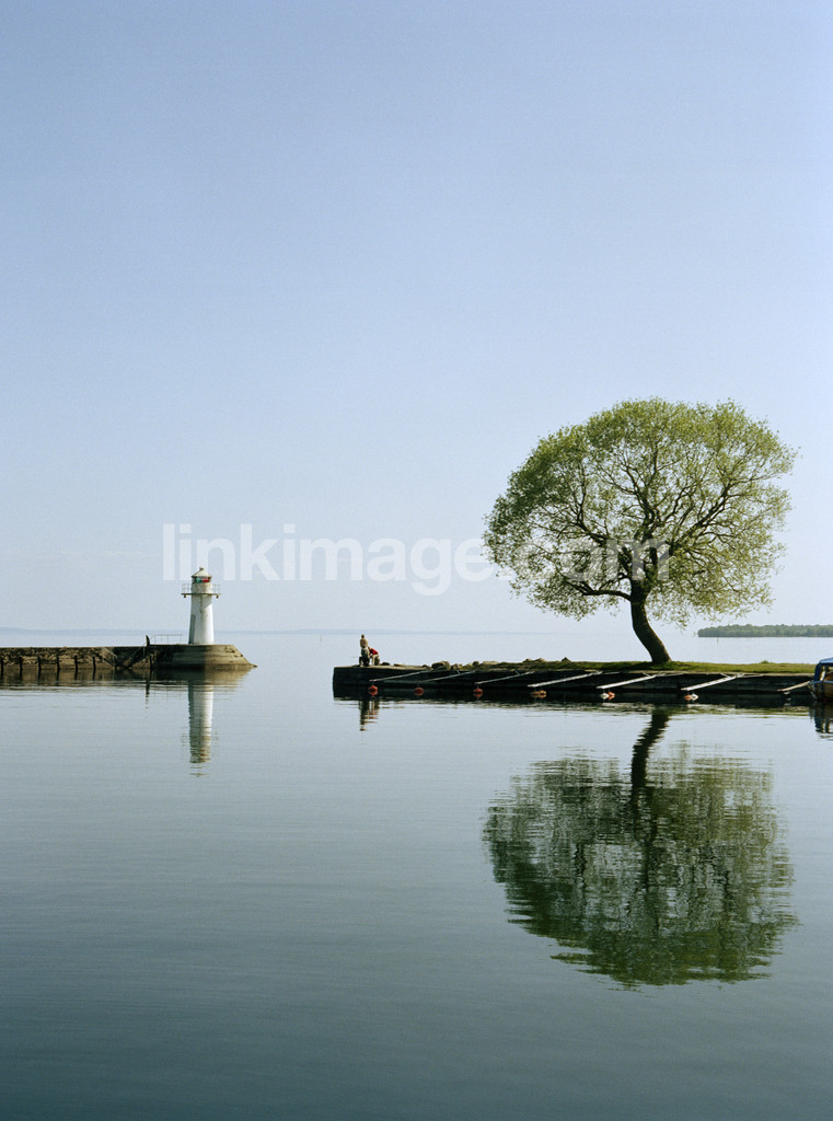 - nature, lake, usualy, water, mirror polished, reflection, beacon, tree, summer, security, sea, inlet, port
