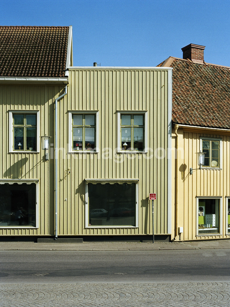 - buildings, residential environment, façade, newly painted, well-managed, neat, idyll, wooden house, housing, road, street, fate