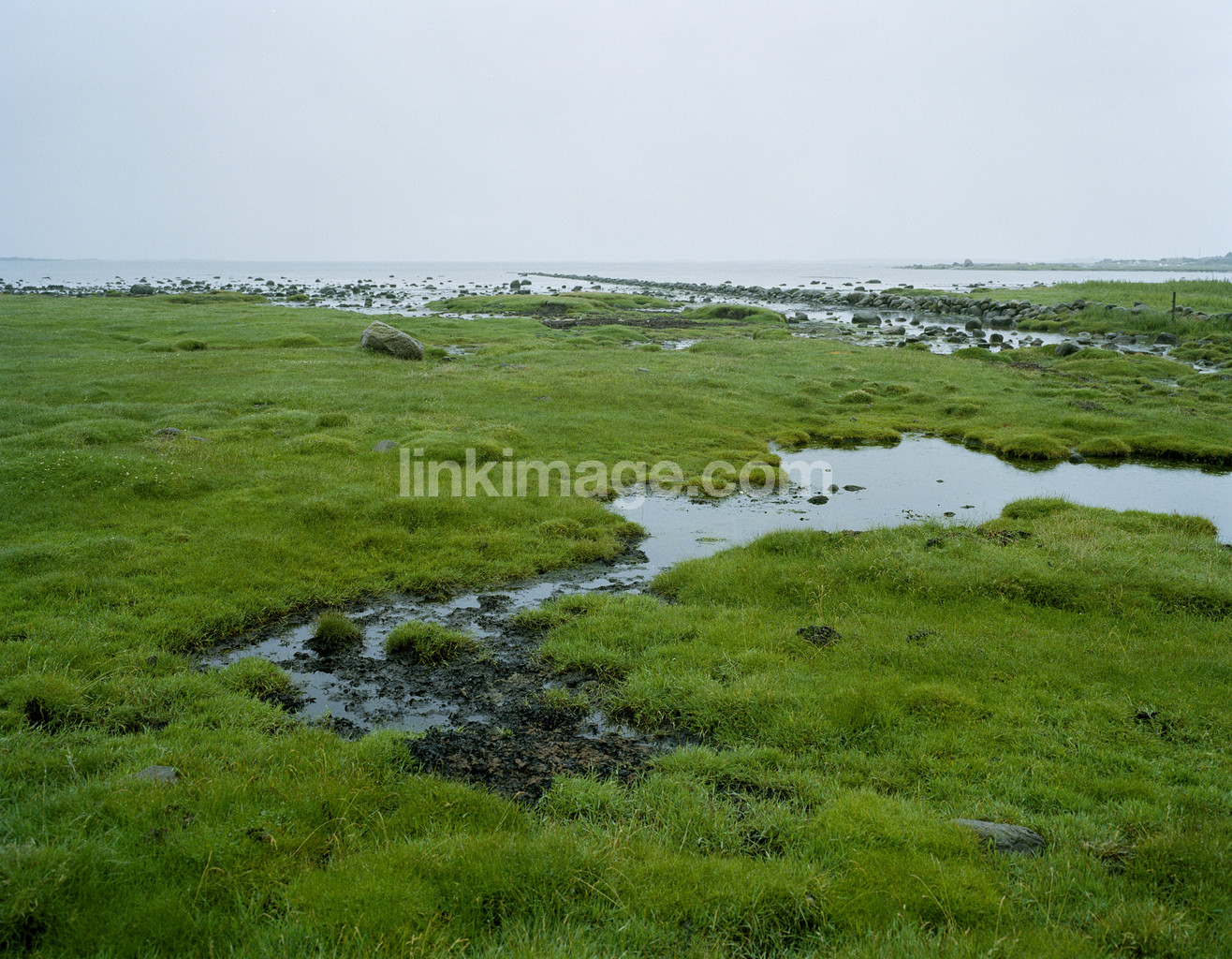 nature, coast, sea, water, stone, meadow, greens, sky