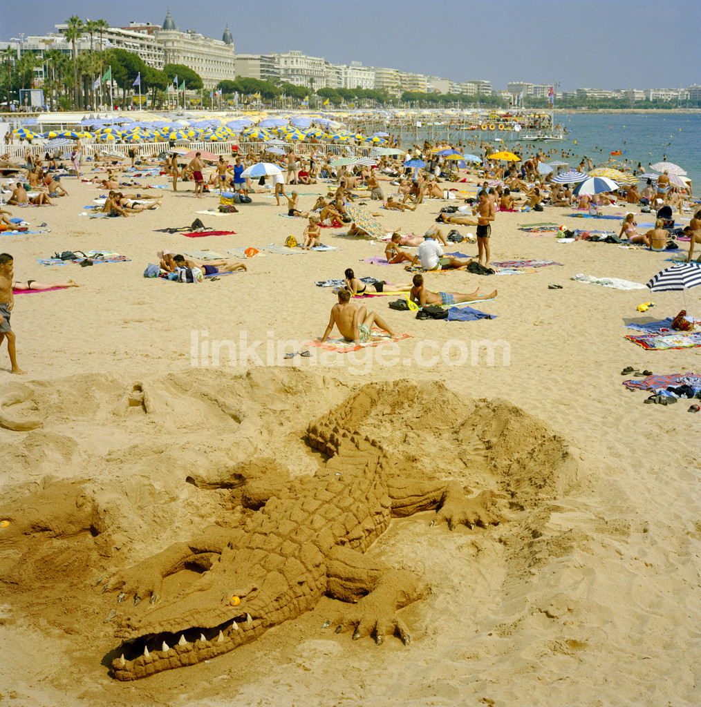 - Crocodile. tourists on the beach. cannes, france