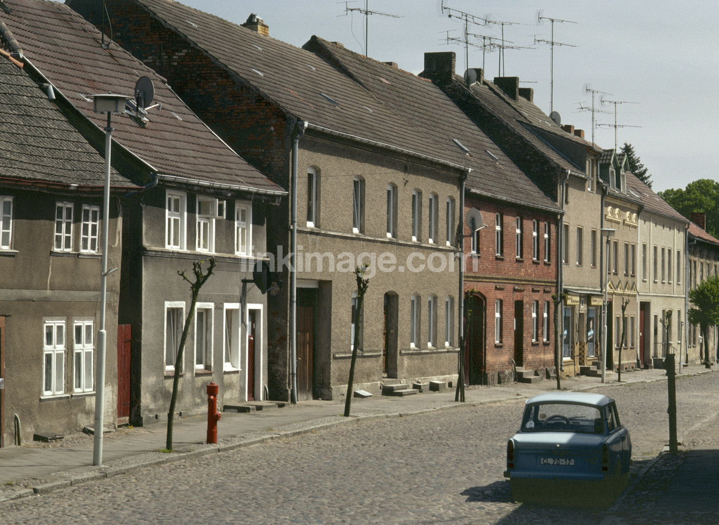 - tvantenner, cobblestone street, trabant, desolately, blank, street, car, bygata, homes, house