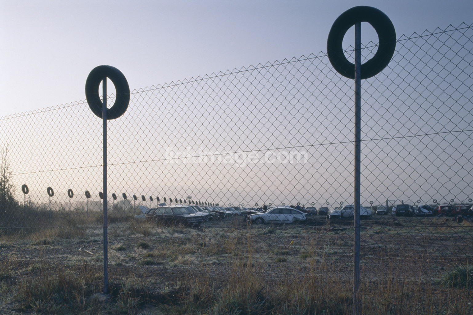 Fences With Image Tyres. Automobile junkyard, Spain