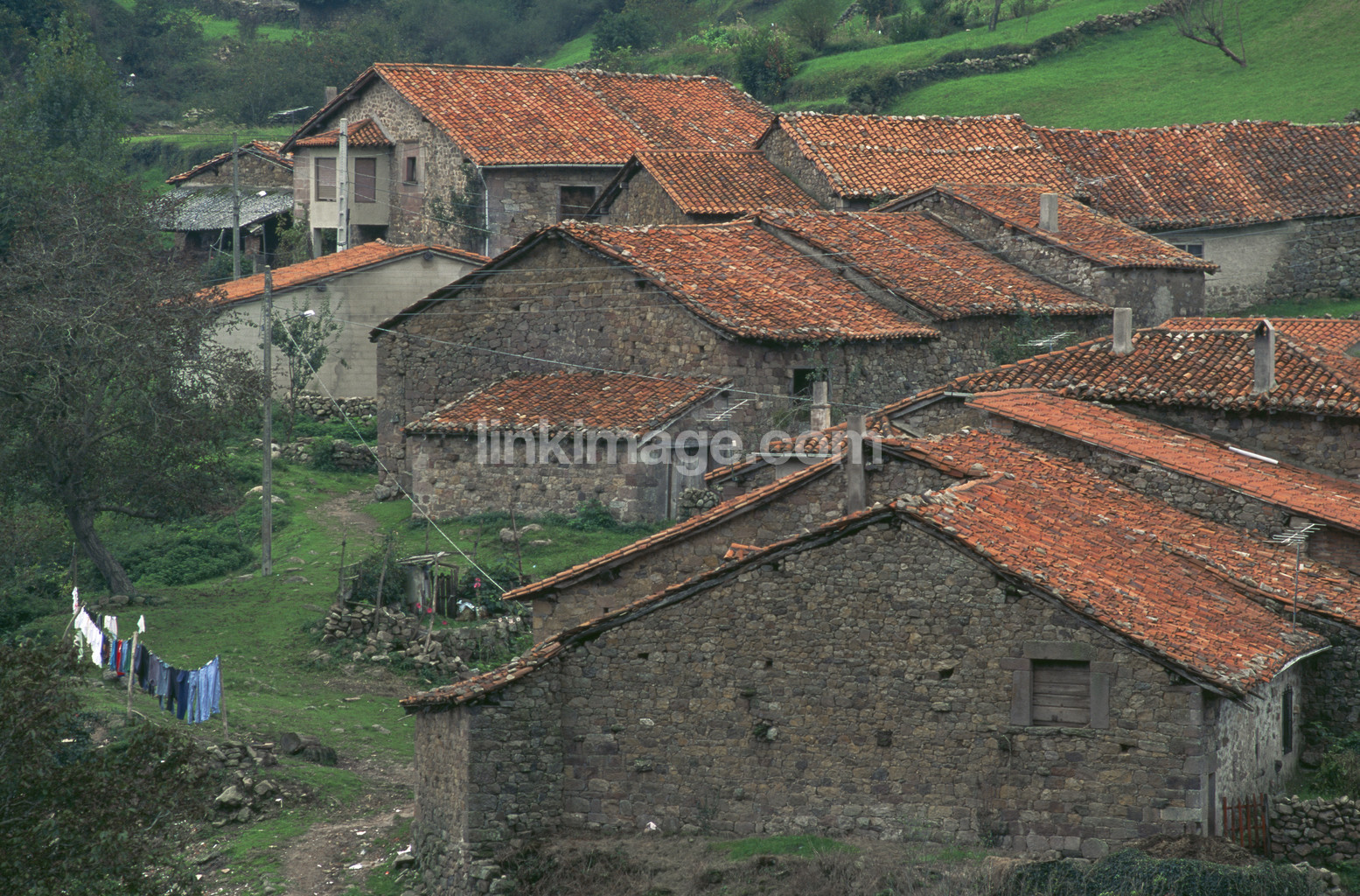 - stone house, tile roof, wash, buildings, by, ceiling, house, hanging, old