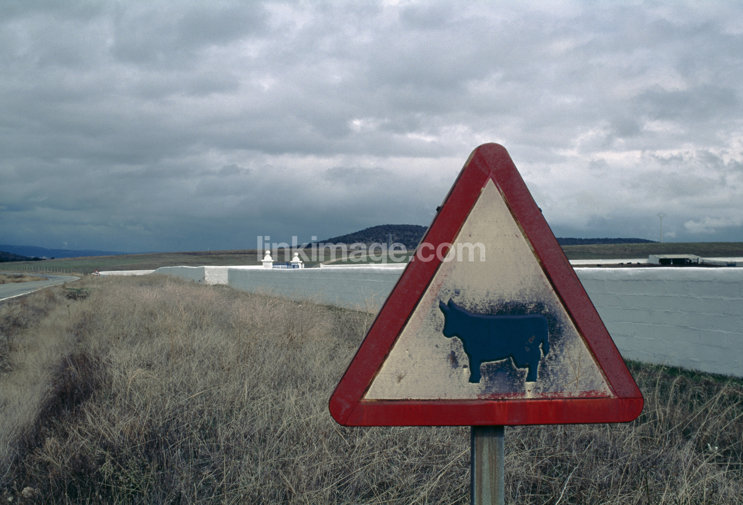 sign, cow, animals, warning, spot, wall, road