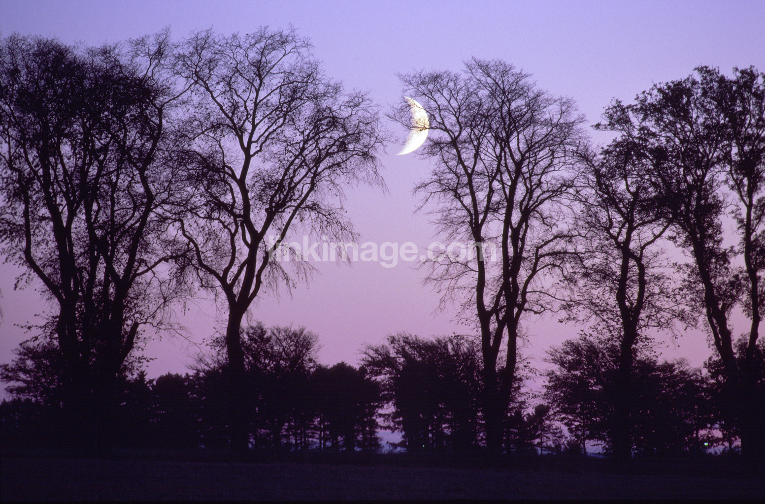 - nature, sky, tree, tree crowns, alle, moon, sunset, purple, avenue