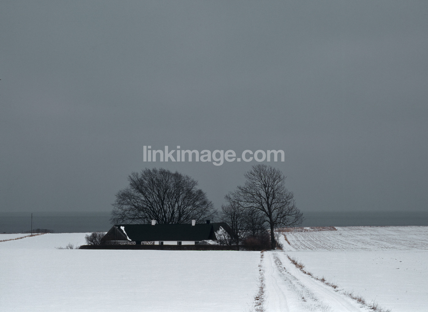 - agricultural, snow, winter, sea, road, farmhouse, yard, cold, tree