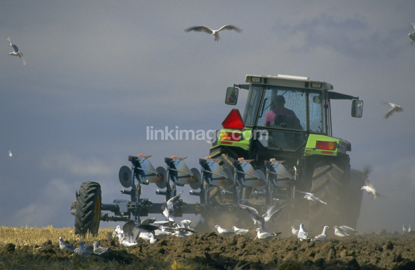 - agricultural, agriculture, bird, birds, backhoe, plough, plow, gulls, soil