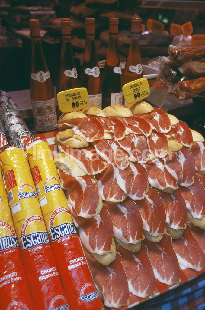 Sausages. Wine and ham. Spain