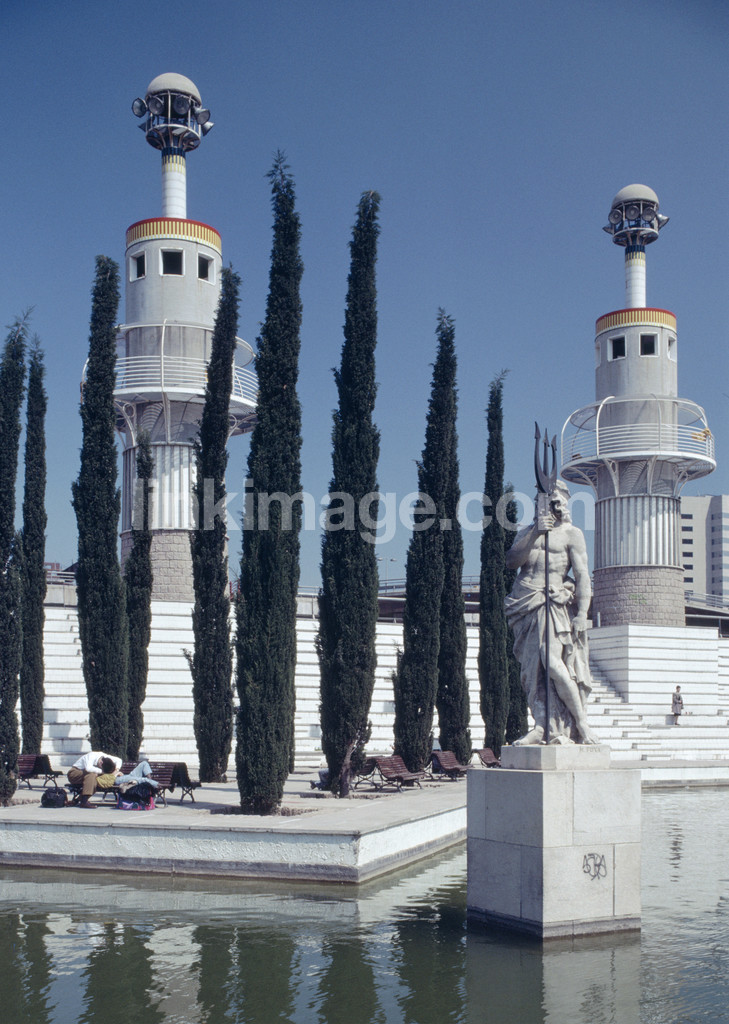 - architecture, park, neptunian, dust, tower, sculpture, an, bushes, tree