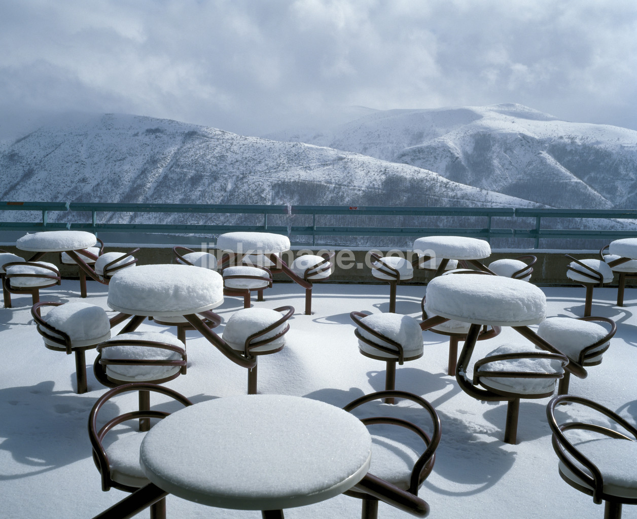 - table, porch, winter, views, serving, leisure, tourism, circles, snow, snowed, round, winter landscape, chairs, balcony