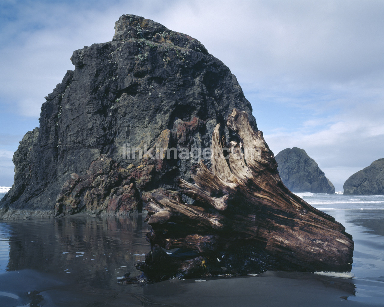 - nature, shore, sky, sand, trunk, sea, stump, root, island, coiled, roots