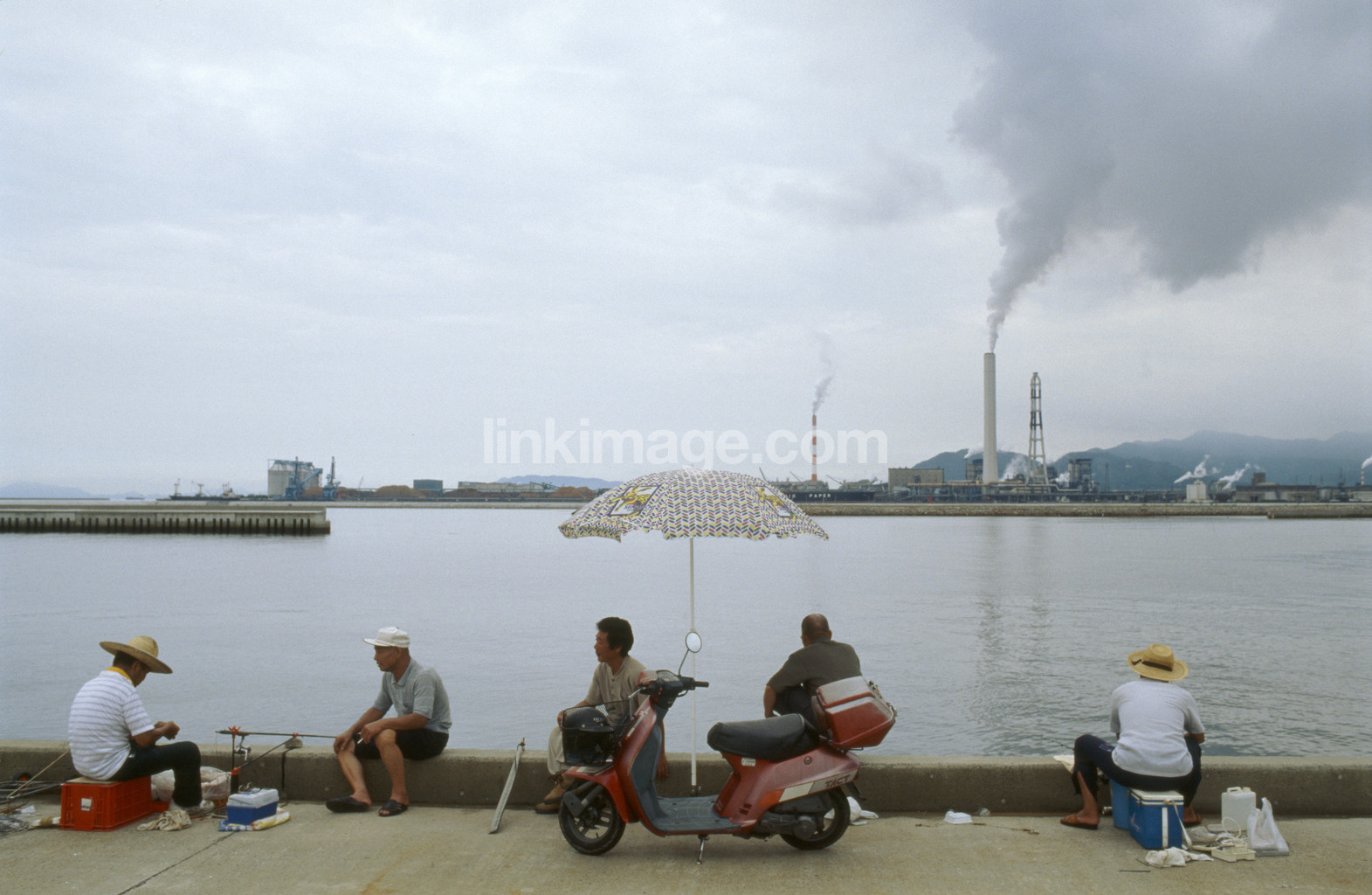 - fishing, port, stack, industrial, smoke, umbrella, motorcycle