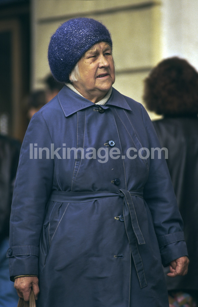 - older, female, coat, cap