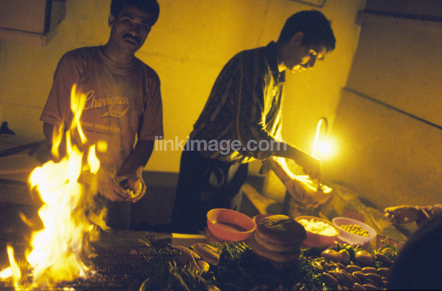 - food, bar, restaurant, cooking, fire, male