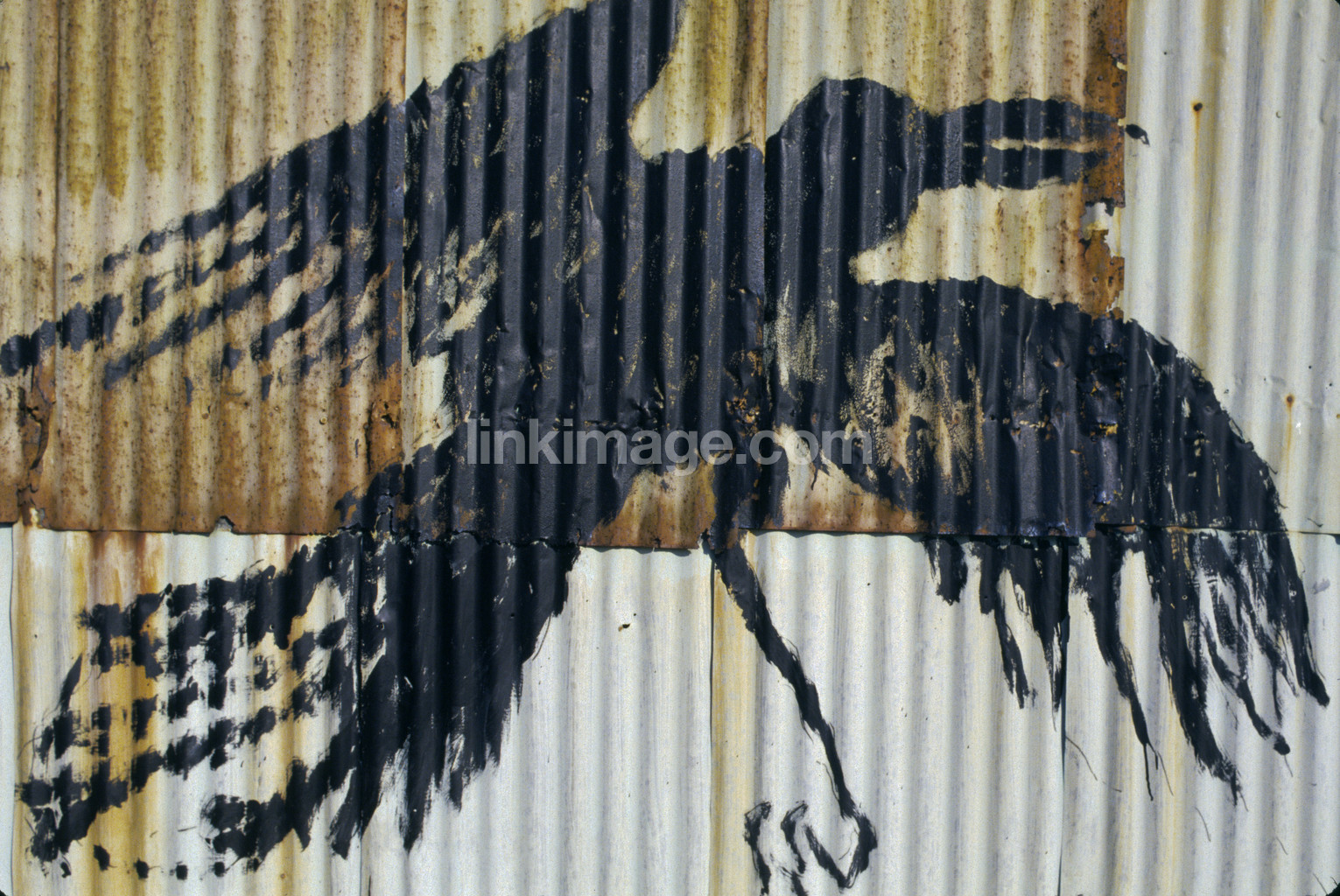 - bird, plate wall, corrugated, wings, flapping, black, crow