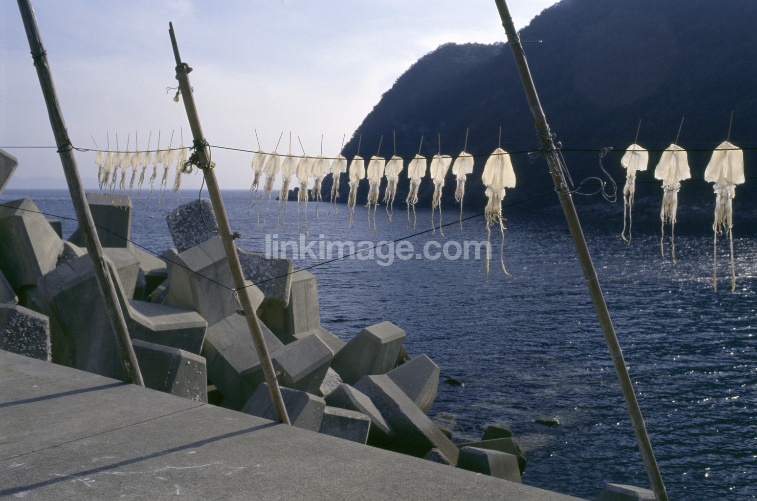 - concrete, fishing, rocks, sea, breakwater, drying rack, transparent, hanging, octopus