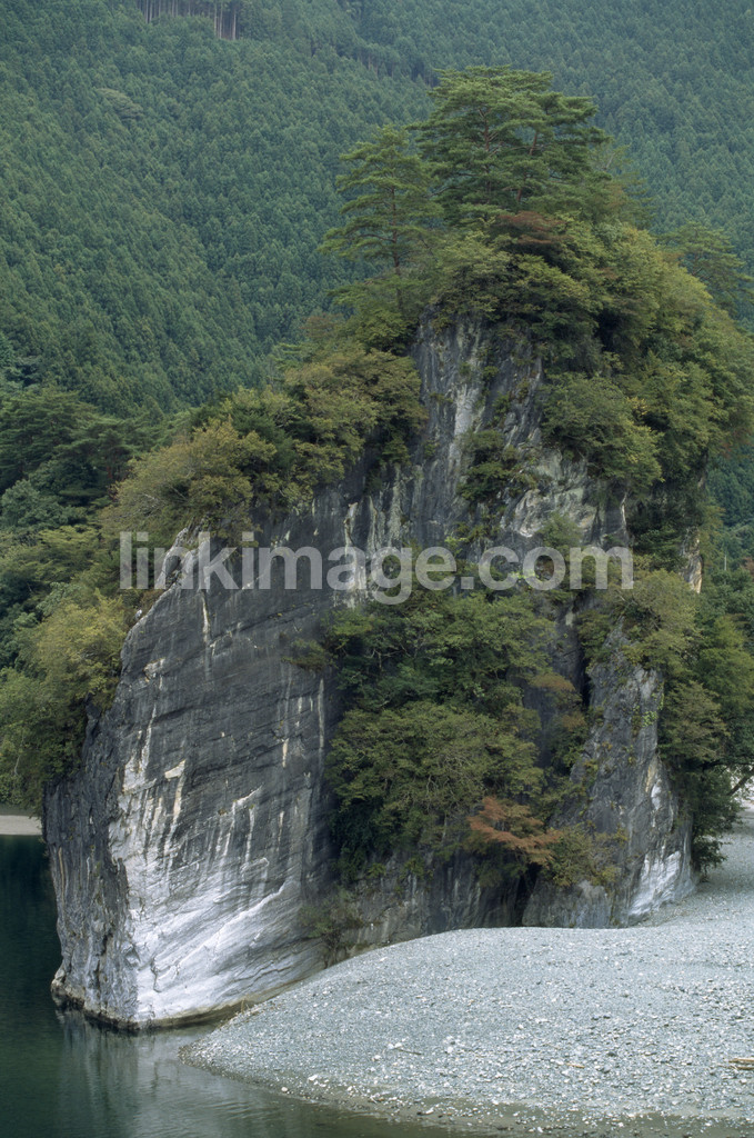 Rock with trees. Ehime prefecture, Japan