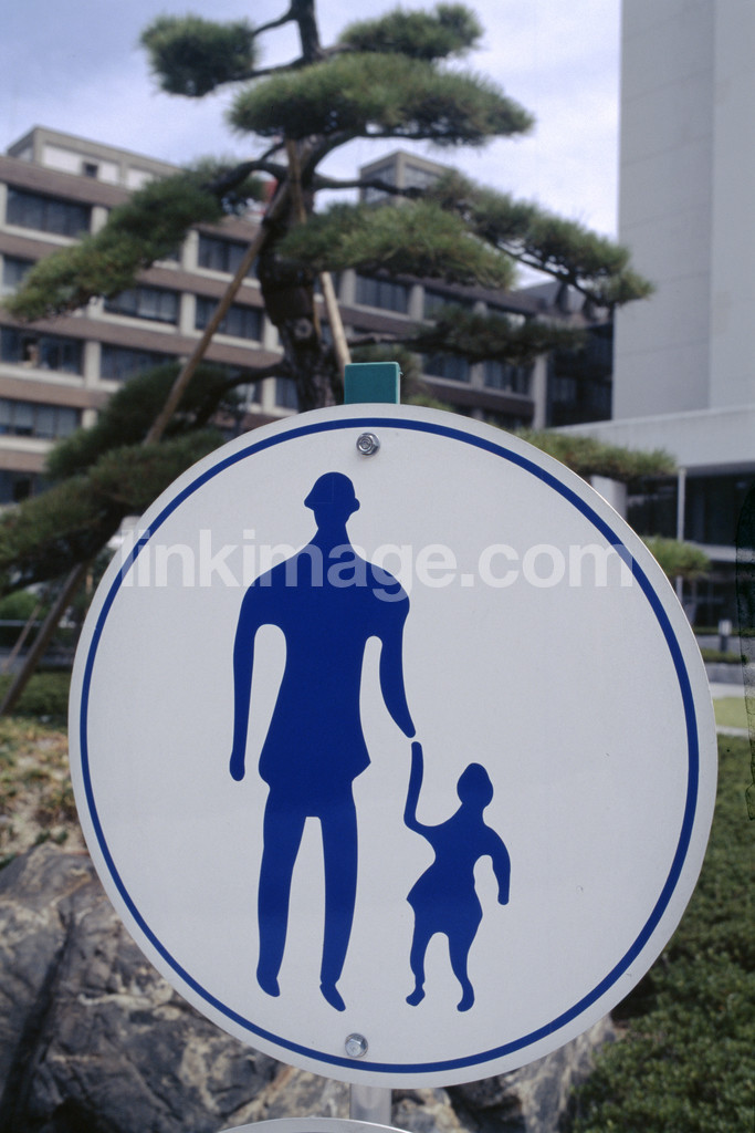 - transition point, couple, children, adult, walker, sign, trakikskylt