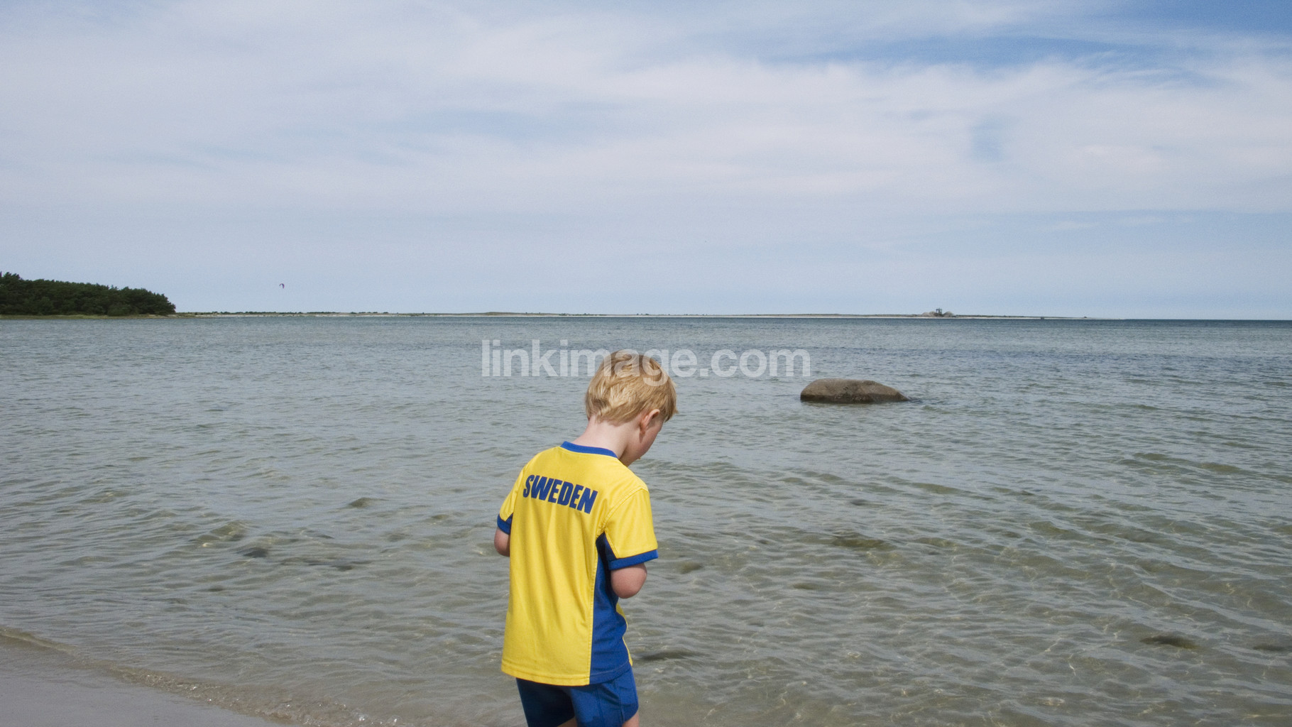 summer, shore, sweden, swedish, guy, boy, sea, water, sports, football, play, alone, back, cloud, sky