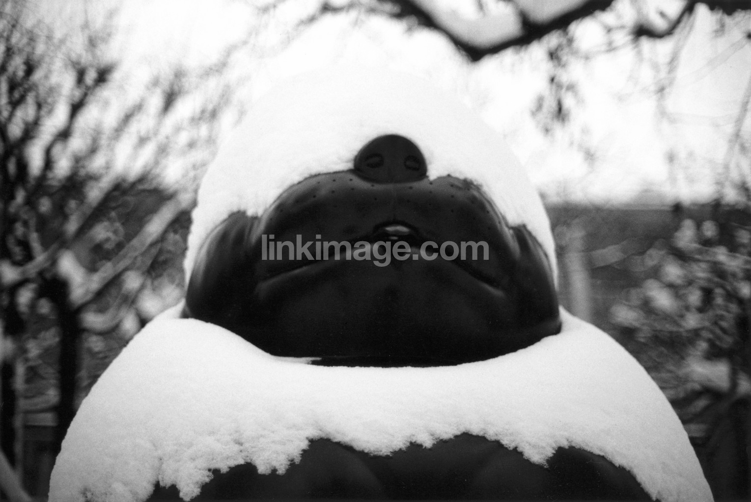 black, white, figure, statue, snow, covered, mouth, nose, sculpture, detail, close-up, snow cover