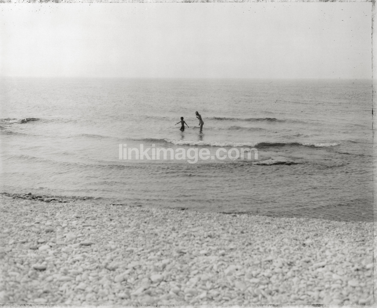 - shore, bath, two, son, mother, children, water, sea, horizon, sky