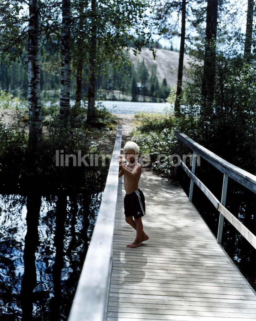 - boy, guy, bridge, wait, forest, children, nature, water, rock, tree