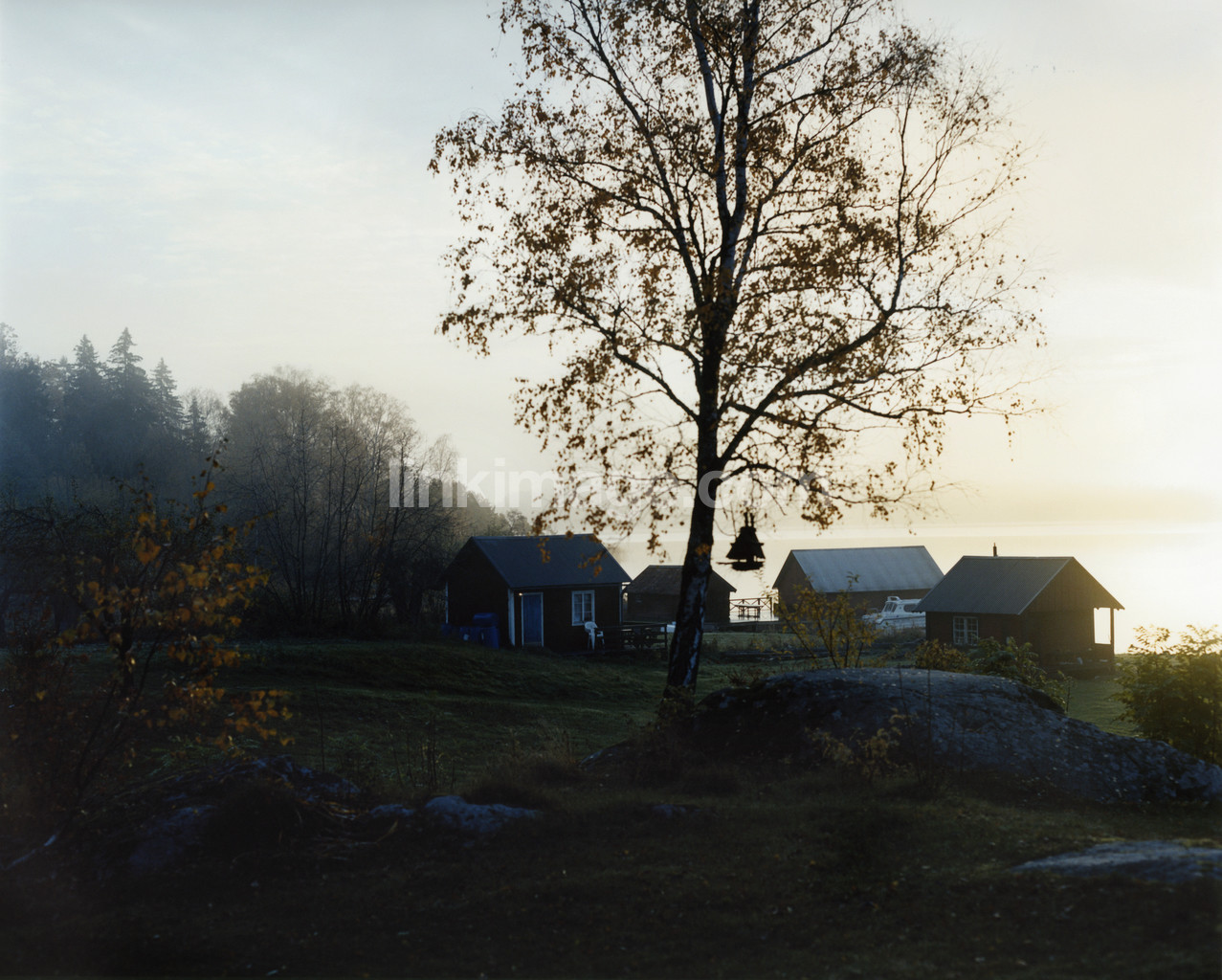 - summerhouse, forest, country house, sun, haze, rise, tree, birch, branches