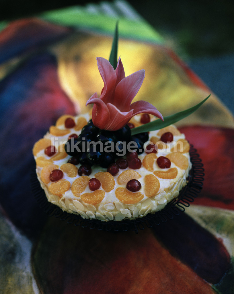 else, summer, pastry, cake, tangerines, colorful, marzipan, flower, petal, fruits