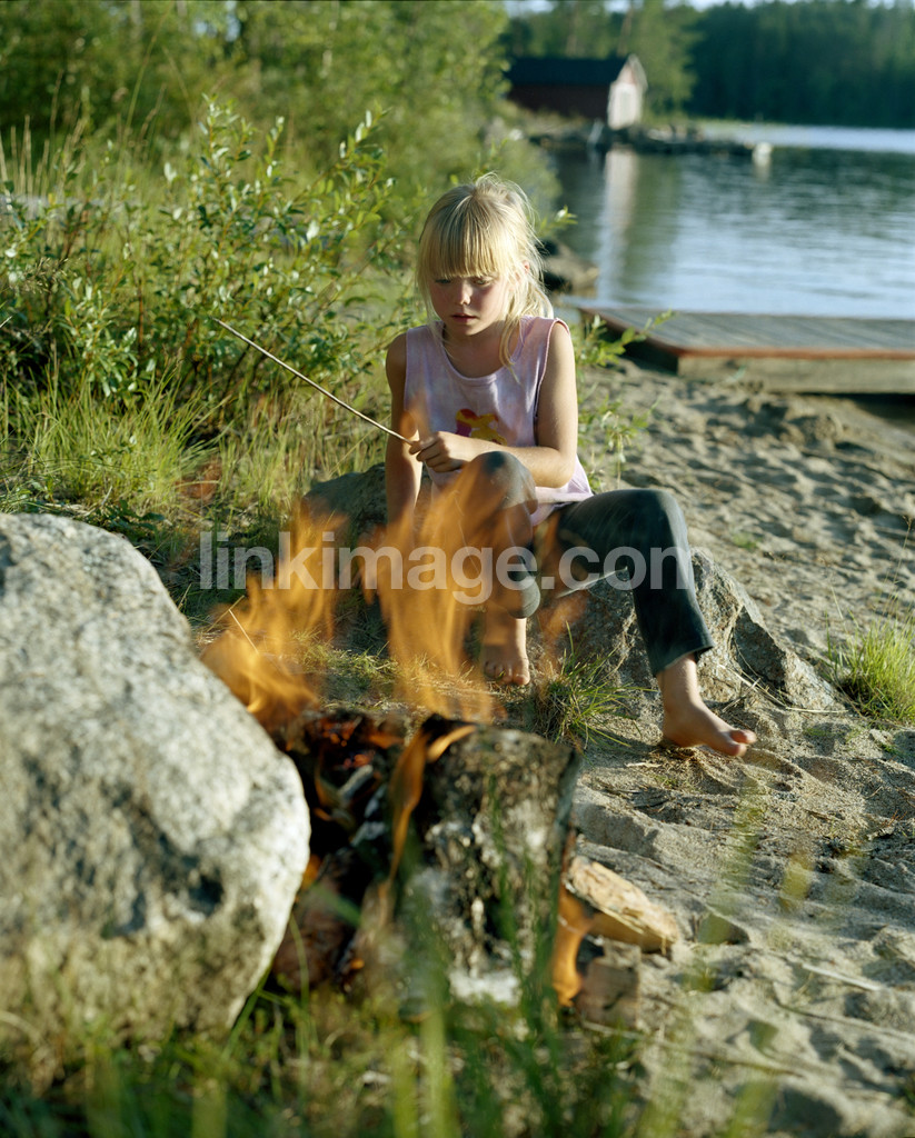- fire, grilling, girl, blonde, children, picnic, water, shore, sand, tweaking, fix, burn