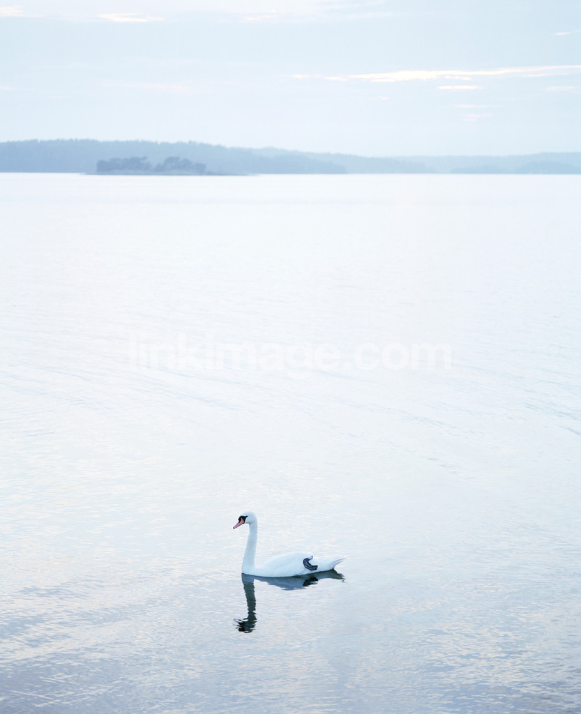swan, bird, water, white, blue, swimming, flowing, alone, large, blank, sea, lake