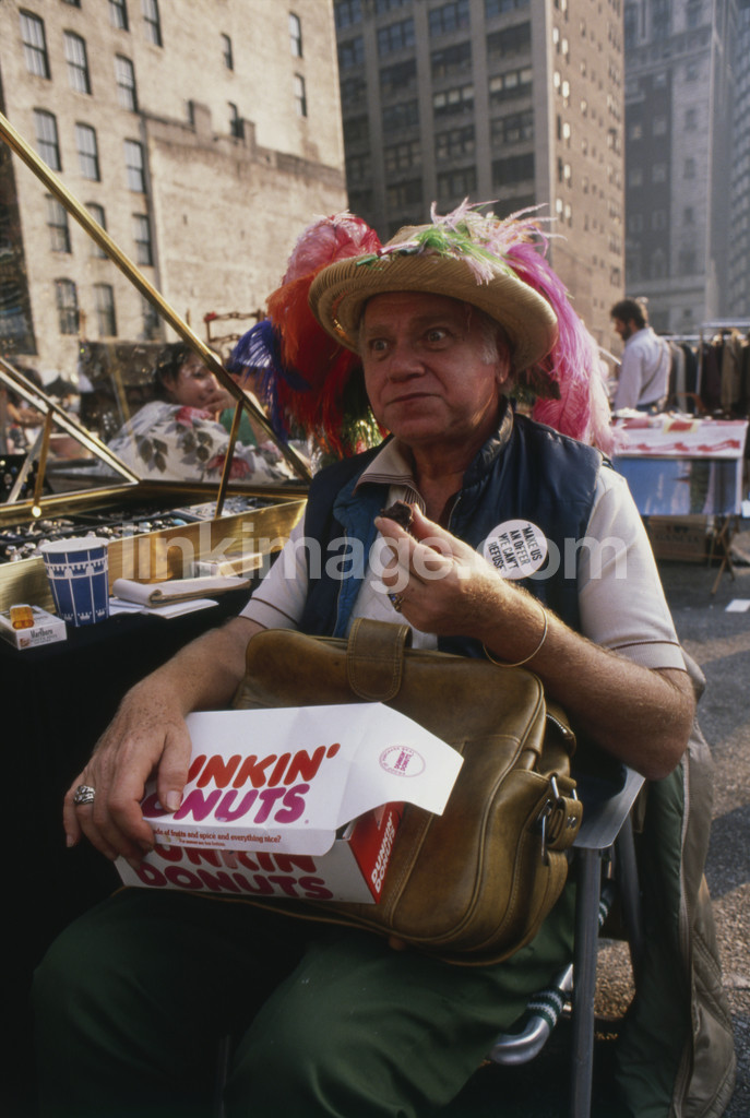 - flea market, hat, feathers, eccentric, vendor, market, flea market, lunch, break, sweets, pastries, chocolate donut, business, findings, detect, trip, new, york, freedom, donuts