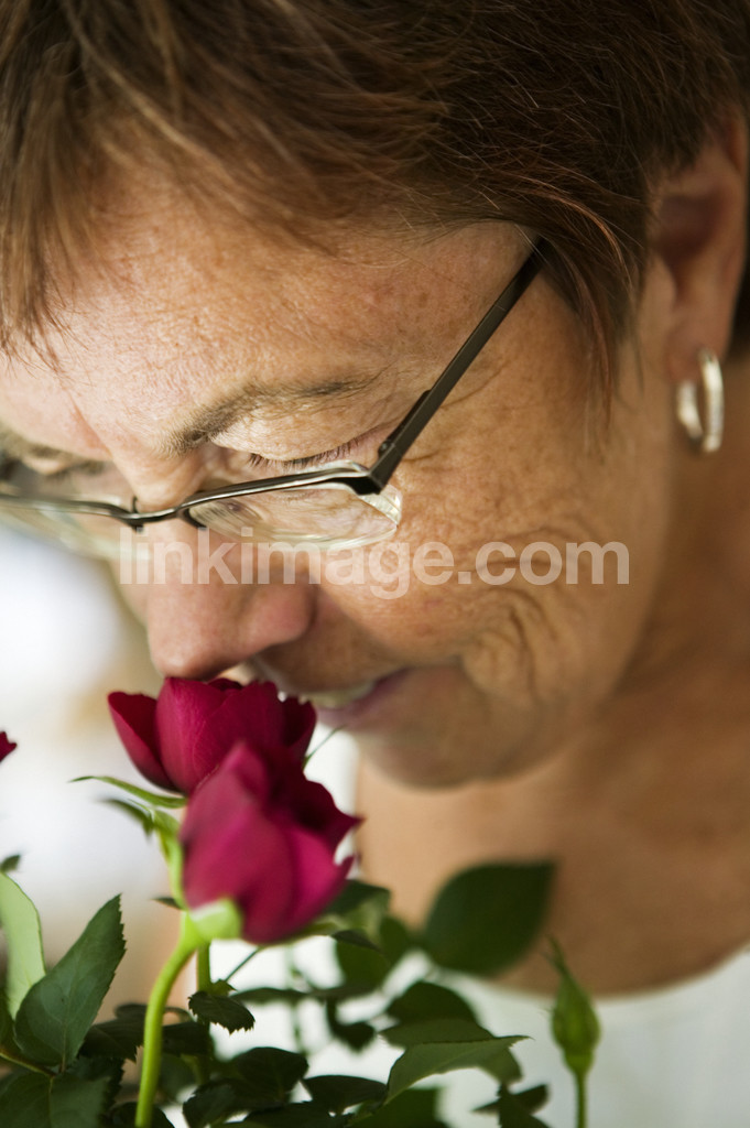 - A woman who smells the flowers