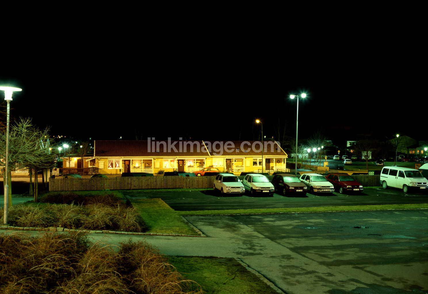 - buildings, residential environment, night, dark, evening, light, lights, cars, parking, villa, house