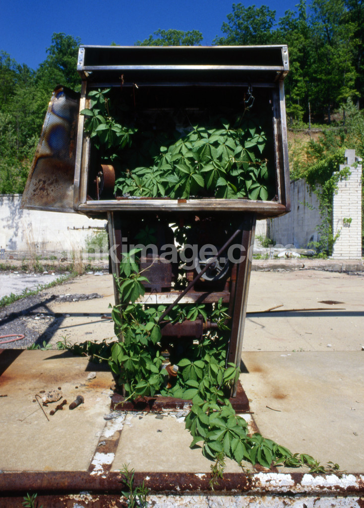Green plants growing at the gas pump