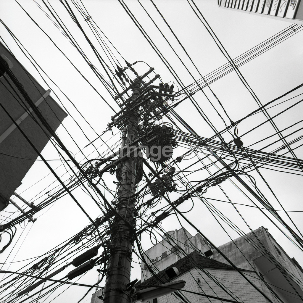 - city, el, telecommunications, chaos, jumble, mess, threads, post, power pole, energy, cables, lines