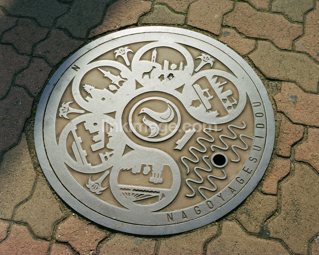 - city, street, pavement, manhole covers, setts, cap, text, information, art
