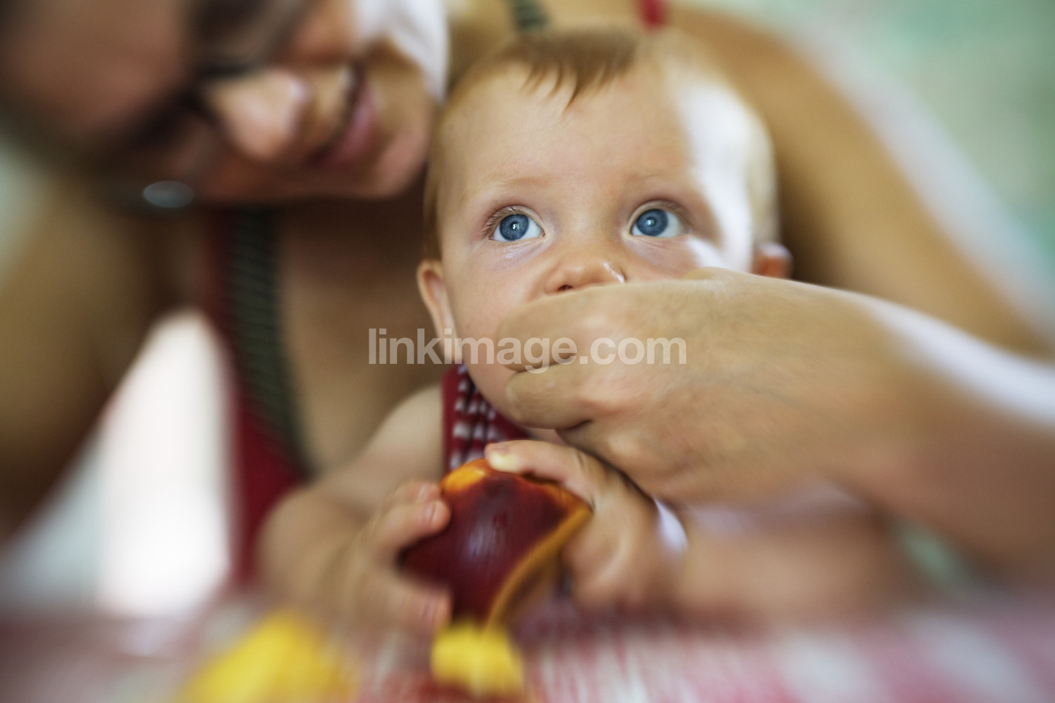 taste, children, baby, infant, mother, female, family, fruits, kitchen, nectarine, examine